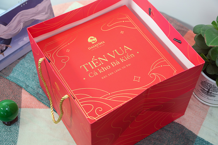 Bao bì của cá kho Bá Kiến cũng là một yếu tố quan trọng khi lựa chọn làm quà Tết. Sản phẩm được đóng gói đẹp mắt, hộp quà tinh tế với tem nhãn sang trọng, tạo ấn tượng tốt ngay từ lần đầu tiên nhìn thấy. Một hũ cá kho được trình bày gọn gàng trong hộp quà không chỉ là món quà vật chất mà còn là món quà mang giá trị thẩm mỹ, nâng tầm hình ảnh doanh nghiệp trong mắt khách hàng và đối tác.